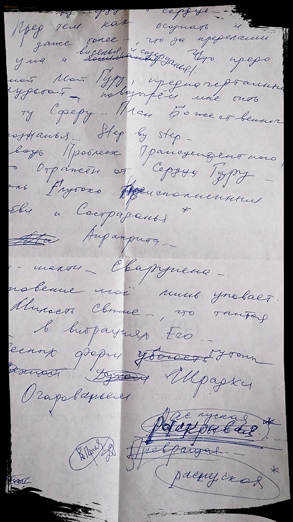 Несложившиеся отношения с молодым мужчиной привели меня, кроме прочих соплей, к мысли о том, что я очень несовершенна. Недостаточно хороша, красива, умна, чиста… Что я могу по большому счёту дать? Да и дело не столь в отношениях, к чёрту их, каждый момент времени мне нужно принимать какие-то решения, но я ни в чём, совершенно ни в чём не могла быть уверена. Не было уверенности, что выбор, который я в каждый момент делаю, – на благо. У меня не было точки отсчёта, цели. Есть моя жизнь, но я не знала ради чего жить. И что мне вообще со всем этим делать? Куда податься? Что делать? Кто мне может подсказать? Мне нужен наставник. Вот какая мысль пришла после всех этих передряг. И вдруг один мой друг, немного сумасшедший мистик, сказал: «У меня тоже было такое чувство. Я понял, что мне нужен духовный наставник. Ты просто молись о том, чтобы Господь тебе его послал, и ты его найдёшь». И я стала молиться об этом. Я читала книги христианских святых, и хоть и не все ответы я могла там найти, я поняла, что, пожалуй, единственная идея, ради чего люди могли бы вместе сосуществовать, была бы идея служения Богу. Но что значит служение Богу? Не все ответы были в тех книгах и статьях.