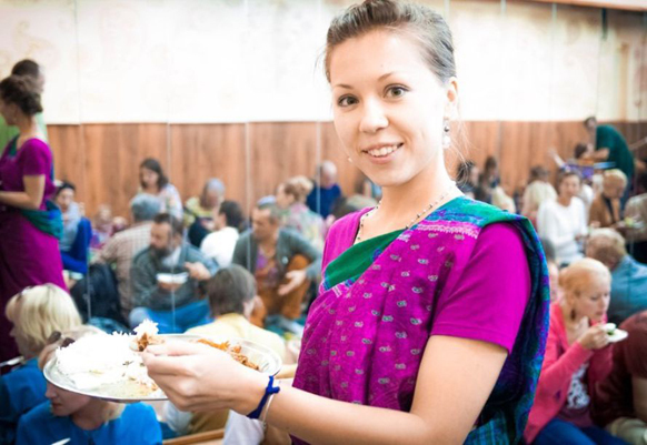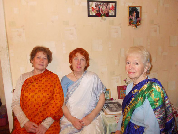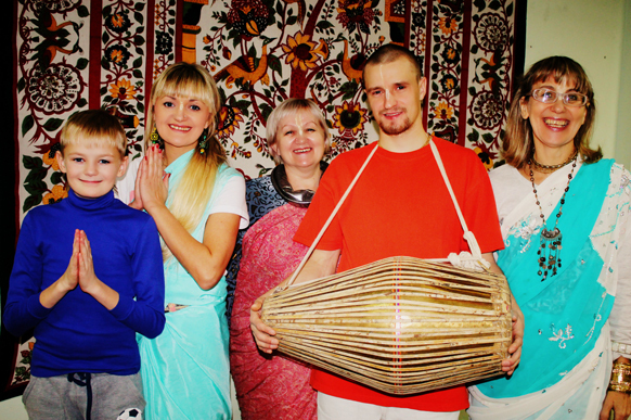 А потом в августе мы поехали в Лахту на фестиваль Джанмаштами. Это был 2009 год. Там я встретила преданных. Помню, как помогая на кухне, вышла немного подышать воздухом и увидела впервые Шрилу Госвами Махараджа со спины в пол оборота. Он беседовал с преданными, а я поражена была настолько, что хотелось стать хоть ковриком у его ног, лишь бы хоть как-то, хоть чуть-чуть быть полезной. Там были Шрила Авадхут Махарадж, Шрила Ачарья Махарадж. По скайпу Шрила Говинда Махарадж также давал даршан.