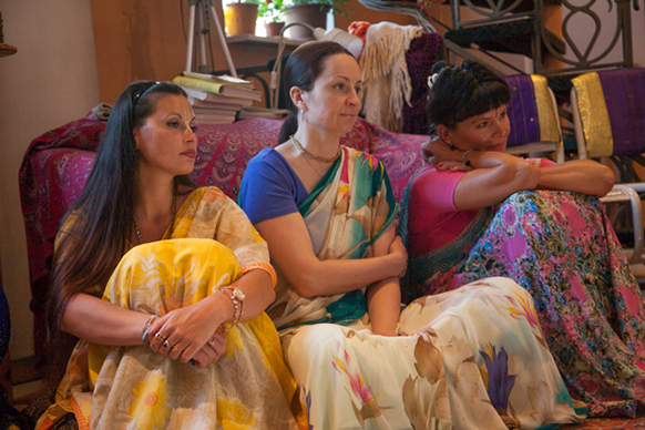 Тут Госвами Махарадж встал и сказал, что я же сама и являюсь примером успешного совмещения обязанностей. "Вот, у Ишарупы вообще муж Хираникашипу какой-то, и все равно она служит" - сказал он.