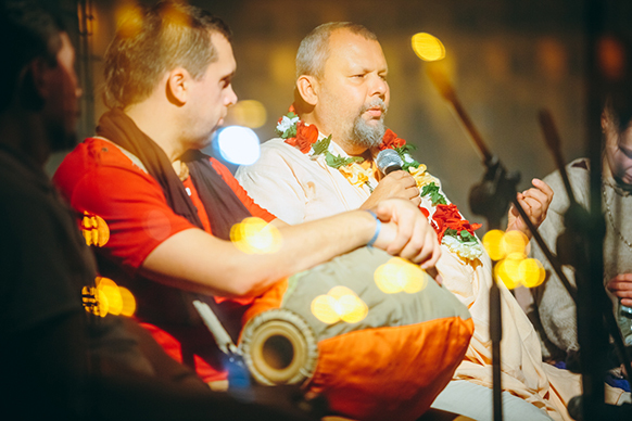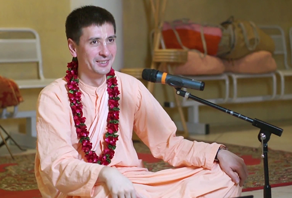 счастливыми, без самокопаний, без рефлексии. Он ничего от нас особого не требует, только быть счастливыми и дарить свою любовь и нежность всем вокруг, повторяя Махамантру. То есть, быть счастливыми - тоже наше служение Гуру.