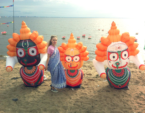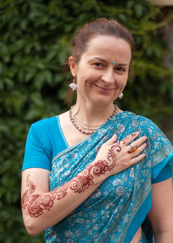 Получилось все случайно, просто и волшебно. Мы с Индубалой Диди обсуждали дизайн альбома. Индубала только что приехала из отпуска. Она преданная очень высокого уровня, одна из первых учениц Шрилы Гурудева в России, Он хорошо ее знает, помнит и всегда рад видеть.