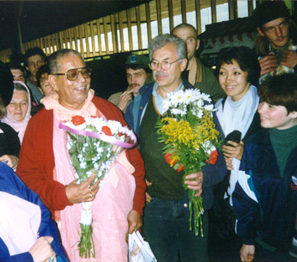 Гурудева пропустили без всякого контроля и осмотра. Авадхут Махарадж организовал групповое фотографирование со Шрилой Гурудевом, но провожающих преданных было так